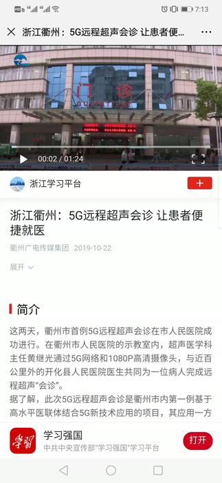 贊!我院5G遠(yuǎn)程超聲會診榮登學(xué)習(xí)強國浙江平臺