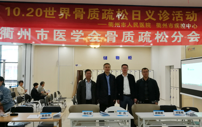 10月20日上午,我院聯(lián)合衢州市疾控中心,在西區(qū)美年大健康開(kāi)展骨質(zhì)疏松義診宣傳活動(dòng)。浙江省骨質(zhì)疏松分會(huì)委員、骨科專家葉舟,中華醫(yī)學(xué)會(huì)骨質(zhì)疏松和骨礦鹽分會(huì)委員、骨質(zhì)疏松門診專家楊紅斌,內(nèi)分泌代謝病科專家胡朝暉、劉加和等醫(yī)護(hù)人員參加義診活動(dòng)。