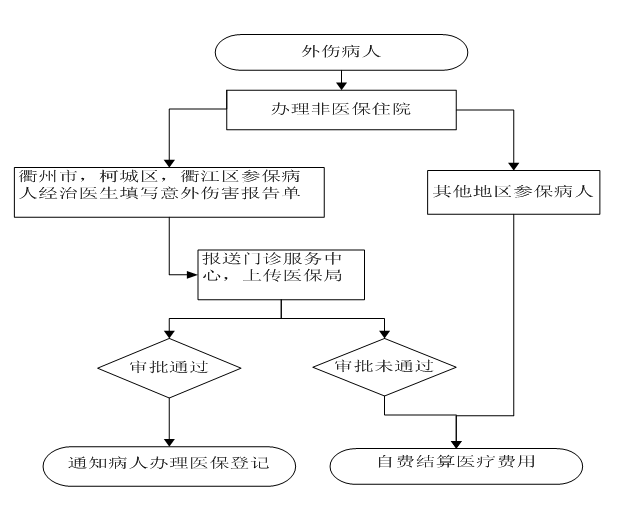 注:衢州市、柯城區(qū)、衢江區(qū)參保病人填寫《意外傷害報告單》到門診服務(wù)中心辦理。其他地區(qū)參保病人醫(yī)療費用自費結(jié)清到當(dāng)?shù)蒯t(yī)保局報銷。