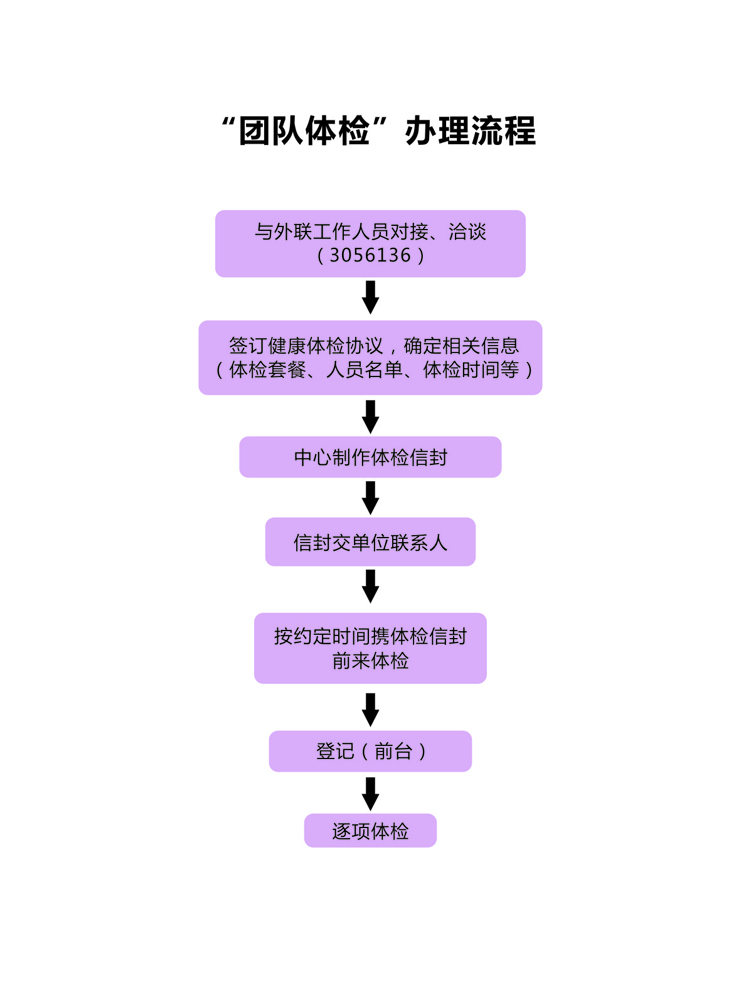 體檢辦理流程 文章來源:健康管理中心 作者: 點(diǎn)擊數(shù):14623 更新時(shí)間:2019-11-15 上一篇: 體檢,到這里!11月8日,四省邊際中心醫(yī)院健康管理中心啟用 下一篇: 2019年體檢套餐 (女)
