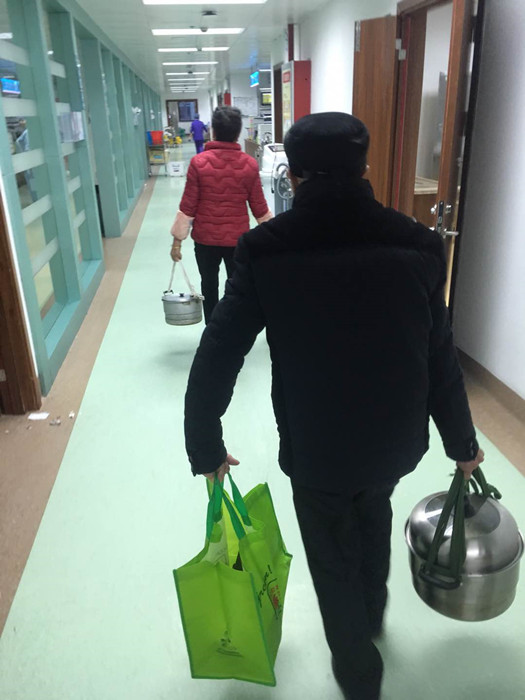 “叔叔阿姨,新年好!……”ICU男護(hù)葉立新看到兩位老人家,連忙上前問(wèn)候并接過(guò)吳爺爺手中的早餐,領(lǐng)著兩位老人來(lái)到醫(yī)護(hù)人員休息室。