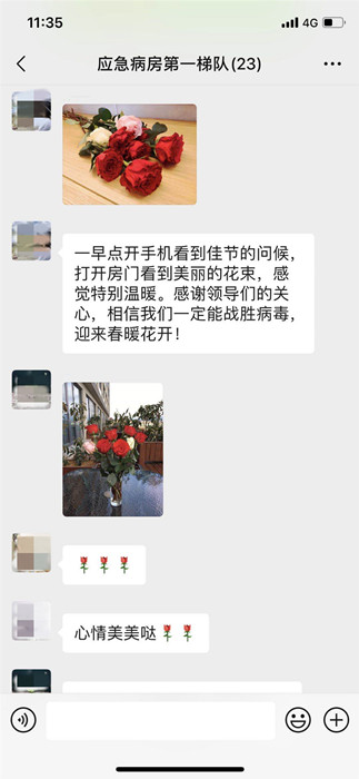 元宵節(jié)一早,我院浮石院區(qū)隔離病房的醫(yī)護人員收到了一份特別暖心的祝福?;ㄐ械奶m女士送來了鮮艷的紅玫瑰,她說,在這個特別的日子里, 你們不能與家人團聚,辛苦了!你們不是一個人在戰(zhàn)斗,身后是全市人民的支持!