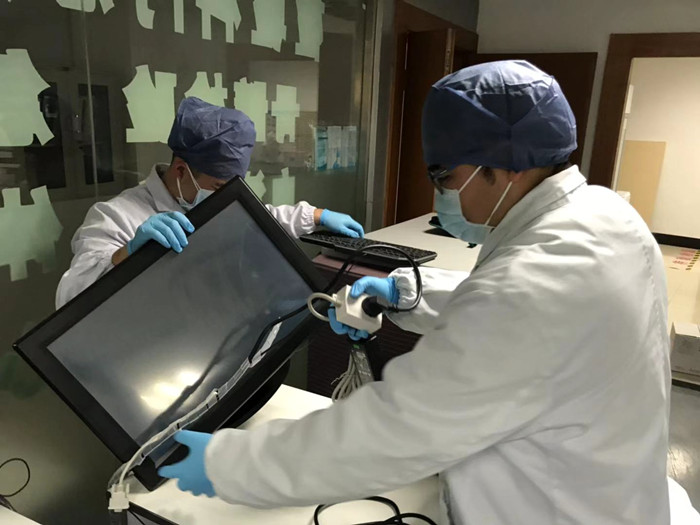 緊鑼密鼓籌備浮石院區(qū)臨時(shí)實(shí)驗(yàn)室,保障標(biāo)本在第一時(shí)間得到化驗(yàn),設(shè)備處的工程師進(jìn)行儀器調(diào)配、安裝、調(diào)試,確保檢驗(yàn)設(shè)備正常運(yùn)轉(zhuǎn)。