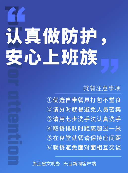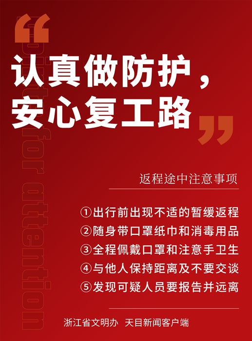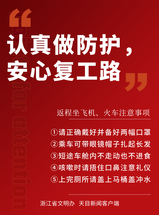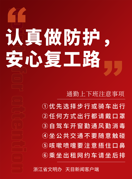 復(fù)工啦!防護(hù)措施做起來!安心工作不用愁! 文章來源:浙江省文明辦 天目新聞客戶端 作者: 點(diǎn)擊數(shù):6649 更新時(shí)間:2020-02-20 上一篇: 預(yù)防新型冠狀病毒感染,營養(yǎng)科專家教您如何吃! 下一篇: 手機(jī)可能傳播新冠病毒!專家演示1分鐘“手機(jī)消毒法”