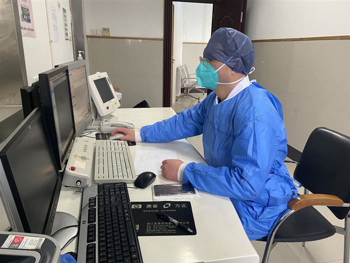 “影像檢查作為臨床疾病的主要診斷方法,平常就是一個工作強度極高的窗口。疫情發(fā)生后,作為新冠肺炎篩查的主要方法,所有有發(fā)熱癥狀、疑似肺炎患者均需做CT檢查,工作量大大增加?!蔽以悍派淇浦魅沃煜K烧f,給臨床醫(yī)生提供精準(zhǔn)的影像資料,是每個放射人的職責(zé)。連日來,他帶領(lǐng)科室人員加班加點,尤其是發(fā)熱病人、疑似病例的檢查結(jié)果,他都要一一讀片,認真把關(guān)。此外,每天還要督促好全科室61名醫(yī)務(wù)人員的自身防護工作。