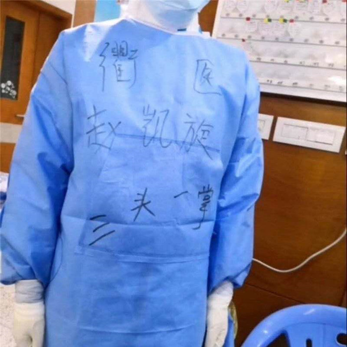 2月18日,援助武漢的第24天,趙凱旋和同在19樓的醫(yī)護(hù)人員“腦洞大開(kāi)”,紛紛把想吃的寫在了防護(hù)服上。東坡肉、羊肉泡饃、胡辣湯……形形色色的家鄉(xiāng)風(fēng)味成了防護(hù)服上一道獨(dú)特的風(fēng)景。來(lái)自我們大衢州的趙凱旋,把衢州特色美食“三頭一掌”寫在防護(hù)服前面。寫的是美食,寄托的是對(duì)家鄉(xiāng)的想念。