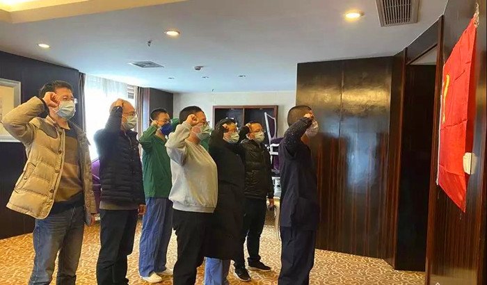 2月21日,浙江省第三批援鄂醫(yī)療隊(duì)的第十八臨時(shí)黨支部成立,柴東劍擔(dān)任黨支部書(shū)記。