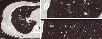無獨有偶,34歲的張女士在一次體檢中發(fā)現肺部有肺磨玻璃影,在結節(jié)的性質沒有確定前,她焦慮萬分,“我沒有咳嗽又沒有發(fā)燒怎么會有肺結節(jié)呢?”“肺磨玻璃結節(jié)是不是就是肺癌?”“要手術嗎?” ……帶著一連串疑問,她來到肺結節(jié)影像??崎T診就診,經影像??漆t(yī)生的檢查識別,明確診斷為斜裂局部胸膜增厚所致假病灶,從而徹底解除了張女士的擔憂。