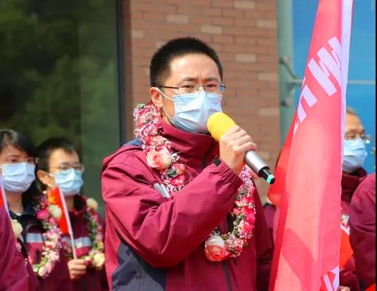 柴東劍作為衢州市第三批援鄂醫(yī)療隊(duì)隊(duì)長(zhǎng)在歡迎儀式上發(fā)言