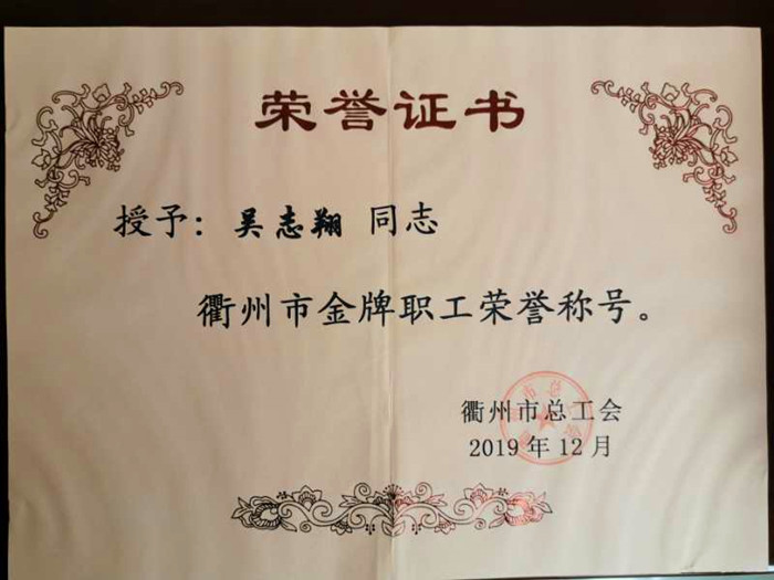 日前,從衢州市總工會(huì)傳來好消息,我院周金紅、徐琳琳、吳志翔喜獲衢州市金牌職工榮譽(yù)稱號(hào)。
