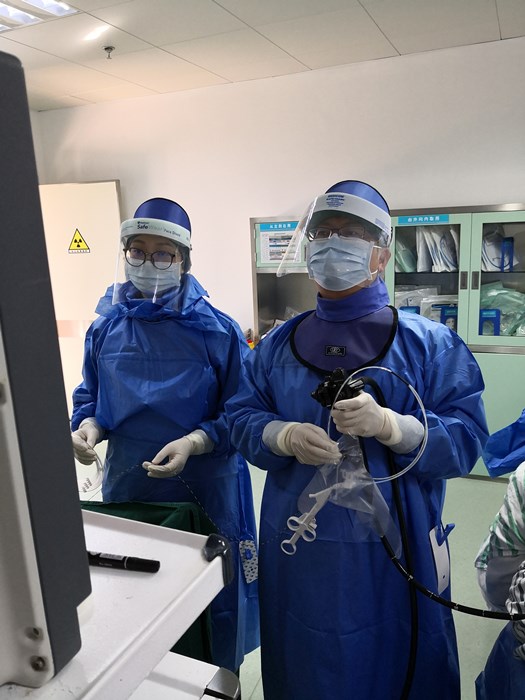 時間就是生命,診療團隊權衡利弊,積極為老人爭取生的希望。完善檢查、充分備血……各項術前準備在爭分奪秒中有序進行。入院當日傍晚,吳大爺進入胃鏡中心手術室,接受ERCP術。