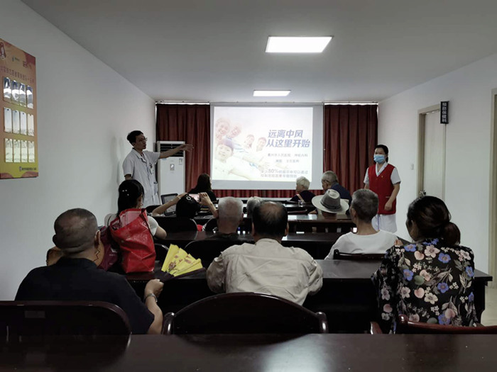 “哪些原因會(huì)導(dǎo)致腦卒中?”“80%腦卒中可以通過控制危險(xiǎn)因素早期預(yù)防?!被顒?dòng)現(xiàn)場,楊銘作《遠(yuǎn)離中風(fēng)從這里開始》的科普講座,“腦卒中(俗稱中風(fēng))是一種急性的腦血管病,具有高患病率、高發(fā)病率、高死亡率和高致殘率的特點(diǎn),被稱為‘人類健康的頭號(hào)殺手’?!蓖ㄋ滓锥氖谡n,社區(qū)居民表示十分受益。
