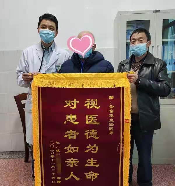 不久前,老人在家屬的陪同下來到醫(yī)院,特地給金醫(yī)師送來錦旗。得知金醫(yī)師正在綜合病房會診,又輾轉(zhuǎn)而來,要親手把錦旗送到,說聲感謝?!爸x謝你,你是老爺子的救命恩人!” 姚老先生的家人對金奇志精湛的醫(yī)術(shù)嘖嘖稱贊,“老爺子今天特意戴了黨徽,向金醫(yī)師表示一名老共產(chǎn)黨員最崇高的敬意。”