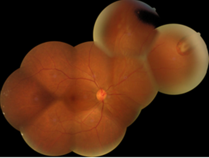 近2個月來,黃女士總是感覺右眼有黑影飄動,眼尾有障礙物遮擋視線,如同眼前蒙了塊布,揮之不去。起初,黃女士沒在意,沒想到,后來遮擋范圍越來越大。在女兒的催促下,黃女士來到了我院眼科進行檢查,結果令人瞠目:眼底有一個大小約3mm的馬蹄形視網膜裂孔,部分視網膜脫離。