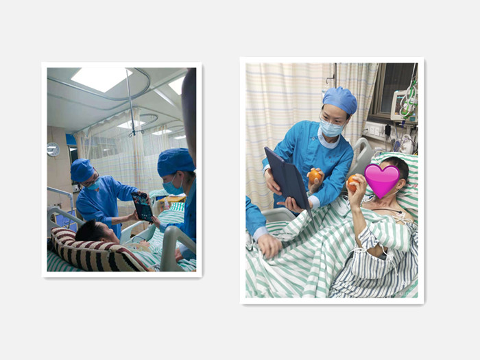 除夕夜,EICU的醫(yī)護(hù)打開iPad,幫助患者和家屬通過云視頻表達(dá)思念,在這辭舊迎新的一天,十名重癥患者和家屬實(shí)現(xiàn)“線上團(tuán)聚”。