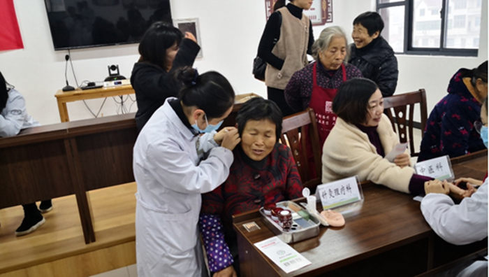 針灸科醫(yī)生為村民們貼耳穴
