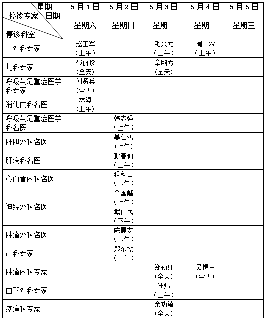 4.靜脈護(hù)理??崎T(mén)診:5月3日下午停診。