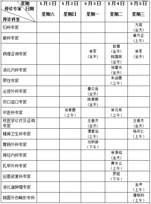 3.病理科門(mén)診:5月1日—5月5日停診。