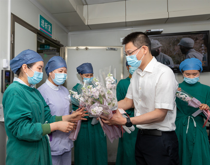 為迎接第110個國際護(hù)士節(jié),弘揚(yáng)新時代護(hù)理工作者南丁格爾精神,5月12日上午,黨委書記陳成水,院長葉金林,執(zhí)行院長李章平等院領(lǐng)導(dǎo)班子成員帶領(lǐng)護(hù)理部相關(guān)負(fù)責(zé)人來到臨床一線,看望慰問護(hù)理人員,為她們送上節(jié)日的祝福和慰問。