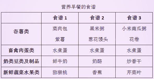 以上食譜操作簡單,具備了營養(yǎng)早餐所含的四大類食物。