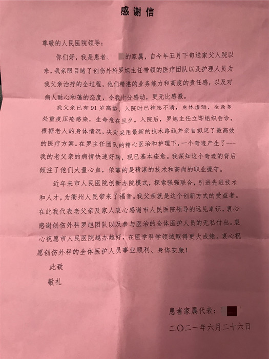 感謝信(致創(chuàng)面修復(fù)科羅旭)