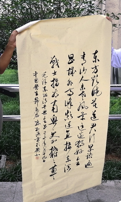 原來孫大伯是一位書法愛好者,還是老年書畫協(xié)會的骨干成員,平時愛寫寫詩歌,這次為感激王丹瓊醫(yī)生,他特地送來"墨寶"。