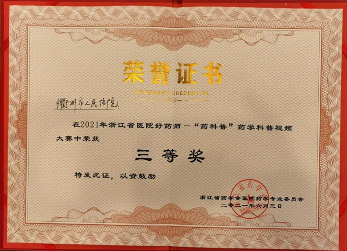 浙江省醫(yī)院好藥師——“藥科普”藥學(xué)科普視頻大賽三等獎