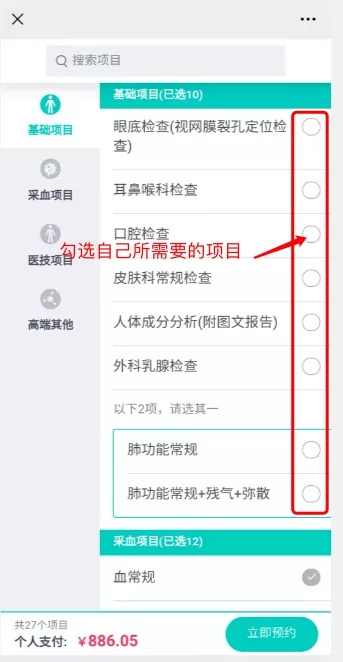 三、可以增加想要的體檢項目,點擊【立即預(yù)約】