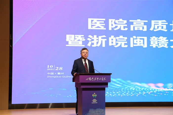 10月28日下午,醫(yī)院高質(zhì)量發(fā)展大會暨浙皖閩贛大健康研討會在四省邊際中心醫(yī)院學(xué)術(shù)報告廳舉行。