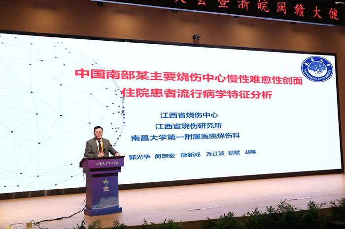 南昌大學(xué)附屬第一醫(yī)院教授郭光華作《中國南部某主要燒傷中心慢性難愈性創(chuàng)面住院患者流行病學(xué)特征分析》主題演講