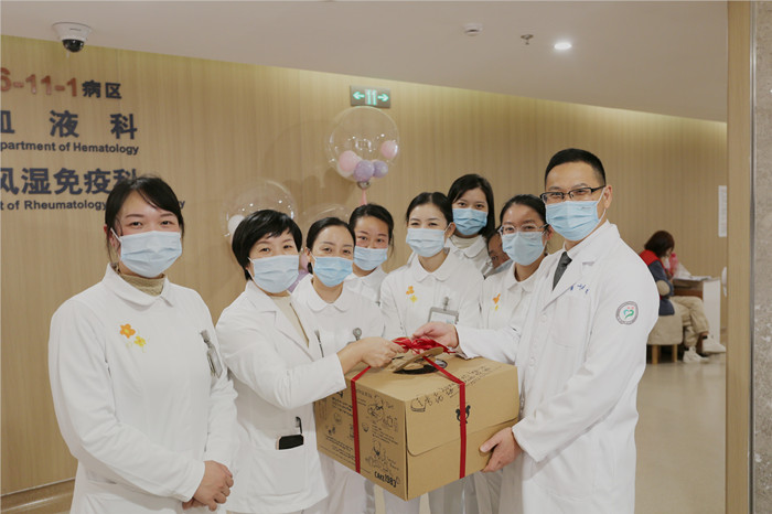 院領(lǐng)導(dǎo)還來(lái)到住院部各病房看望慰問(wèn)搬遷到新院的患者,并為奔忙一個(gè)上午的醫(yī)護(hù)人員送上蛋糕。