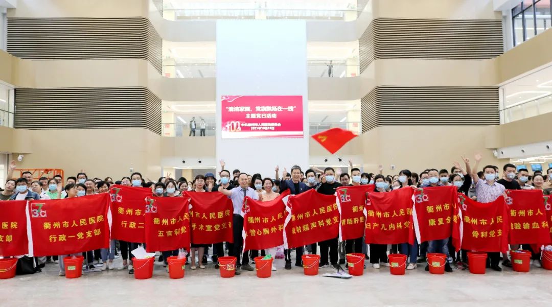 金色十月,秋高氣爽,黨旗飄揚(yáng),黨徽熠熠。10月16日,在閩江大道100號(hào)四省邊際中心醫(yī)院(衢州市人民醫(yī)院),一場(chǎng)“清潔家園,黨旗飄揚(yáng)在一線”主題黨日活動(dòng)正如火如荼地進(jìn)行著。