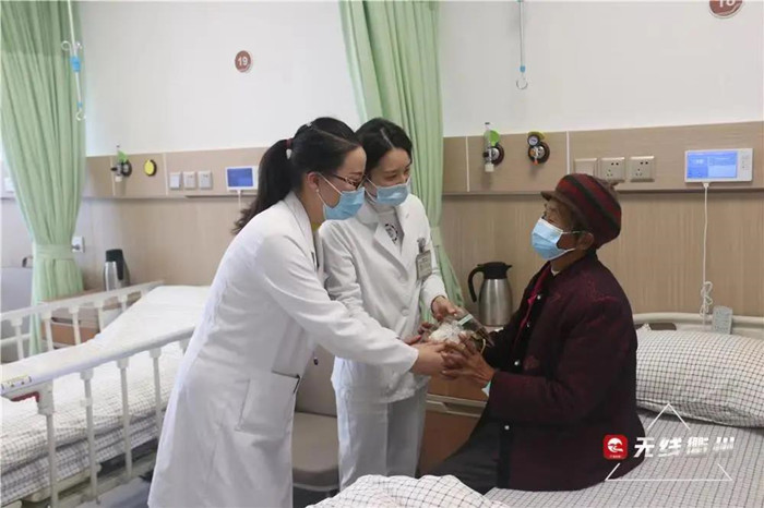 在科室人員的共同努力下,科室第一批患者順利入住,所有的工作忙而不亂。第一位病人入住后,醫(yī)護(hù)人員為她送上暖心禮物。