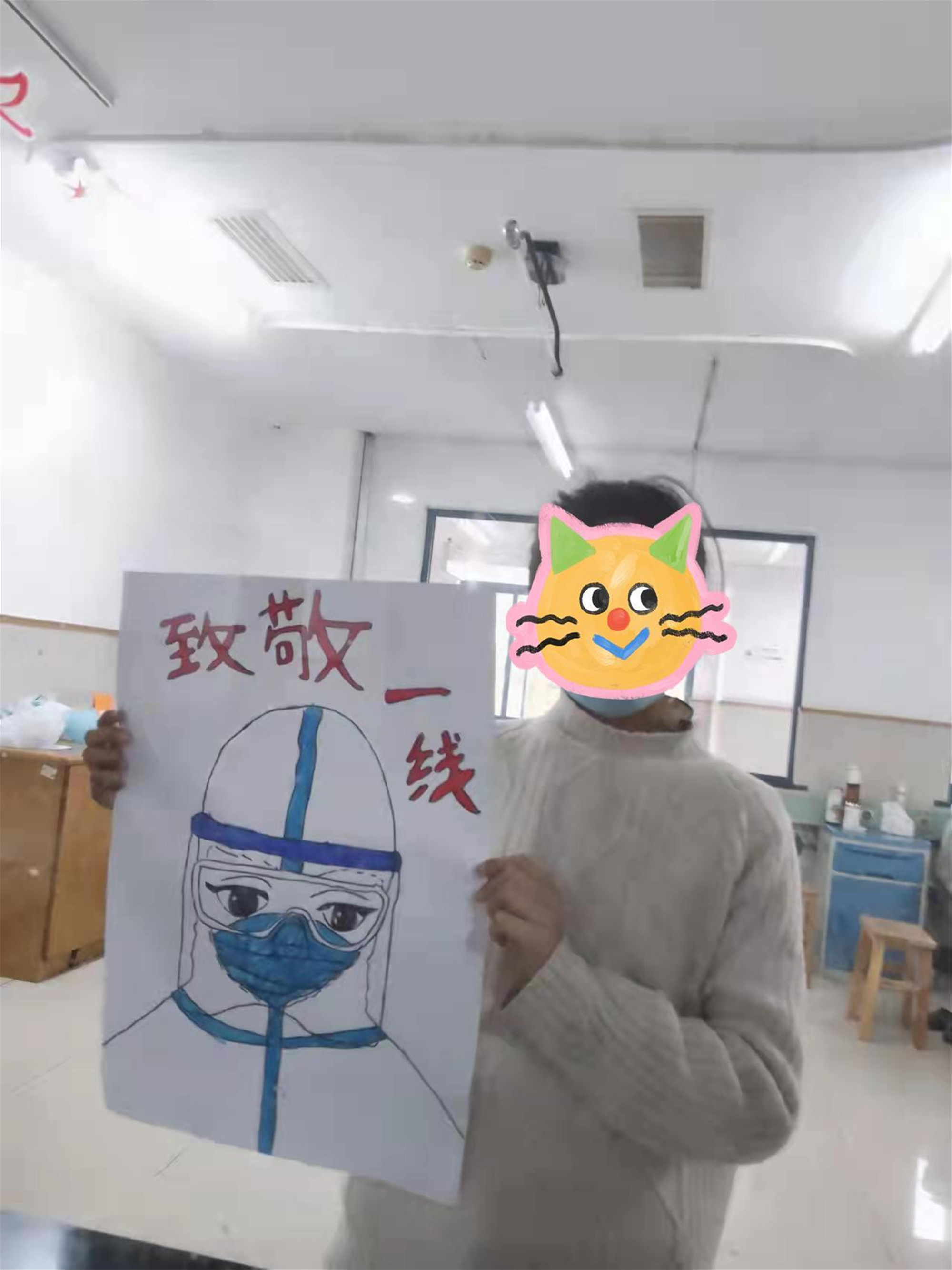 “這是我收到最珍貴的禮物,謝謝叔叔阿姨們,我會(huì)加油的!”原先不愛言語的小吳道出了內(nèi)心深處最樸實(shí)的話語。小姑娘拿起畫筆,為其中的一位護(hù)士阿姨作肖像畫,并寫下:致敬一線。