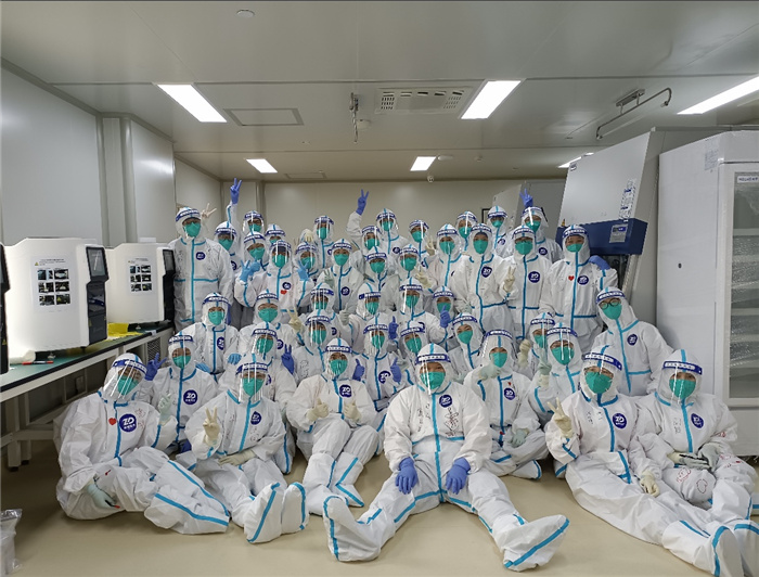傅向紅主任迅速做了統(tǒng)籌安排,她帶領(lǐng)科室毛蘇清醫(yī)師、吳敏云醫(yī)師、曹穎醫(yī)師、鄭利花護(hù)士第一時(shí)間奔赴一線。生殖實(shí)驗(yàn)室技師王小紅、王毓因?yàn)橛蠵CR上崗證,主動(dòng)請(qǐng)纓來(lái)到核酸檢測(cè)基地,加入了不分晝夜的核酸檢測(cè)組。