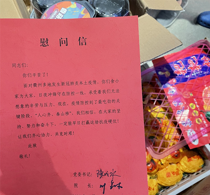 “我們的沖鋒在前,也離不了院領(lǐng)導(dǎo)和家人們的支持,不管是凌晨四點(diǎn)的熱騰騰的早飯還是午夜十二點(diǎn)的暖心夜宵,都是醫(yī)院領(lǐng)導(dǎo)對(duì)我們滿滿的關(guān)懷?!?月19日晚10點(diǎn),氣溫驟降,大伙完成了一天的任務(wù)回到酒店,看到院領(lǐng)導(dǎo)帶著熱騰騰的稀飯站在酒店門口,頓時(shí)感覺(jué)心里一陣暖流。曹書記動(dòng)容地說(shuō):“你們?cè)谇胺綉?zhàn)斗,我們?yōu)槟銈冄a(bǔ)充能量,同志們辛苦啦!”