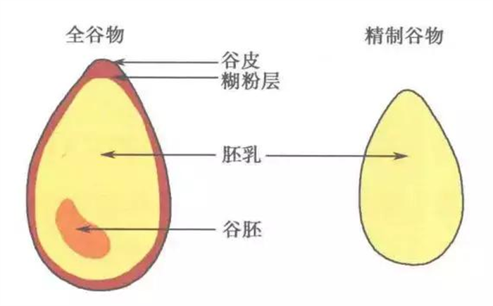全谷物中的胚芽主要是一些多不飽和脂肪、維生素E,而麩皮中主要含膳食纖維、B族維生素和礦物質。