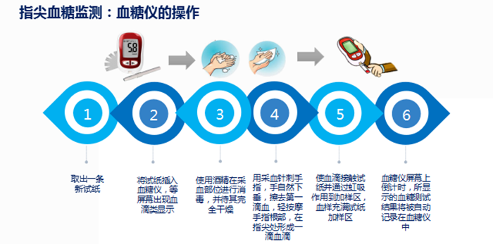 “測(cè)試血糖時(shí)應(yīng)輪換采血部位,應(yīng)在手指?jìng)?cè)面采血,將采血針緊靠在手指?jìng)?cè)面,棄去第一滴血......”很快,姜先生康復(fù)出院了,出院時(shí)祝春燕細(xì)心地指導(dǎo)姜先生使用血糖儀。