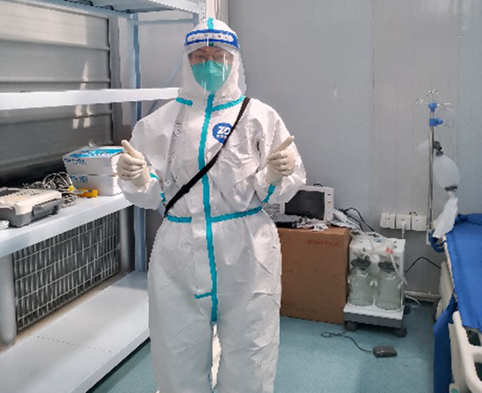 我們負(fù)責(zé)管理方艙醫(yī)院,設(shè)施設(shè)備、藥品、物資、耗材等必須在三天內(nèi)完成。領(lǐng)隊(duì)打前戰(zhàn),每天進(jìn)方艙,查看建筑布局、流程、個(gè)人防護(hù)、清潔消毒、醫(yī)廢處置。我們?cè)隈v地熟悉工作流程、院感制度等,強(qiáng)化院感防控培訓(xùn)。每位隊(duì)員嚴(yán)格考核穿脫防護(hù)服,避免院內(nèi)感染。三天時(shí)間,整個(gè)醫(yī)療隊(duì)快速高效地完成了開(kāi)艙前的準(zhǔn)備工作,并為每個(gè)病人準(zhǔn)備了愛(ài)心大禮包和日常生活用品。