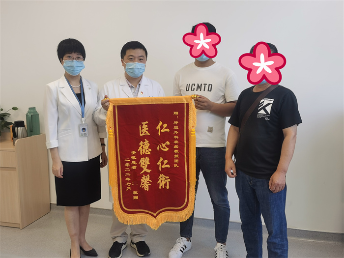 “衢州市人民醫(yī)院值得信任,是老百姓值得托付的好醫(yī)院?!背鲈寒?dāng)天,靳女士和家屬向袁磊博士團(tuán)隊(duì)上送上錦旗和感謝信,“袁磊博士團(tuán)隊(duì)把困難和風(fēng)險(xiǎn)留給自己,把希望留給患者,這份恩情,一生銘記?!?