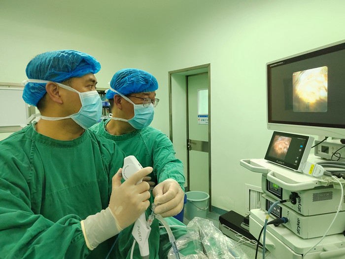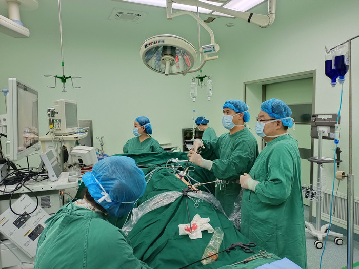 “要及時解除梗阻,可以行腹腔鏡輸尿管切開取石術(shù)取代開放手術(shù)。”在朱劍勇的帶領下,這支剛剛成立的“泌尿外科團隊”,僅用了一個半小時就完成了手術(shù)?!案骨荤R輸尿管切開取石術(shù)創(chuàng)傷小,患者腰腹部只有3個戳孔,術(shù)后恢復快?!敝靹τ抡f。