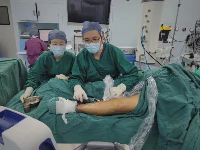“大部分患者聽說手術都會有些恐慌,認為手術創(chuàng)傷很大,這其實是片面的認識,治療大隱靜脈曲張的微創(chuàng)手術創(chuàng)傷小、恢復快、疼痛輕,是目前國內(nèi)最先進的微創(chuàng)手術?!?