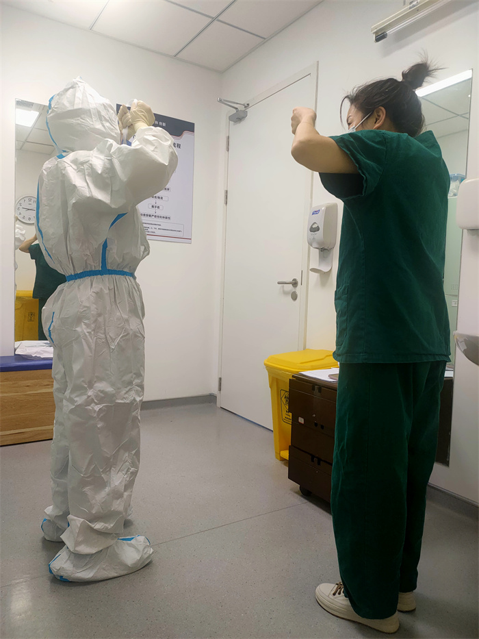 “院感防控是疫情防控的生命線,國(guó)慶假期我們依舊奮戰(zhàn)在崗位上,不能有絲毫松懈,院感培訓(xùn)、健康監(jiān)測(cè)、感染風(fēng)險(xiǎn)排查等,是我們每一個(gè)院感人的責(zé)任?!痹焊刑幪庨L(zhǎng)林麗紅表示。