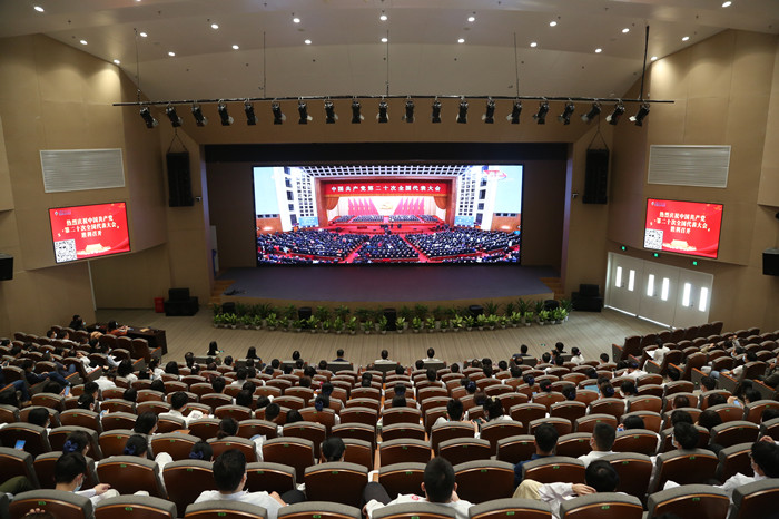 10月16日上午,我院黨委組織全體黨員、共青團(tuán)員在學(xué)術(shù)報(bào)告廳集中收看黨的二十大開(kāi)幕會(huì)實(shí)況直播,習(xí)近平代表第十九屆中央委員會(huì)向大會(huì)作報(bào)告。大家在第一時(shí)間學(xué)習(xí)領(lǐng)會(huì)黨的二十大精神。