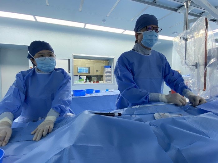 6月20日,我院心血管內(nèi)科屠曉鳴主任領(lǐng)銜團(tuán)隊(duì),成功完成全市首例微創(chuàng)下左心耳封堵術(shù)。