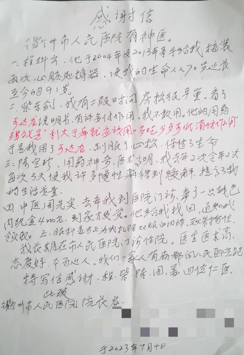 感謝信(致程科云、柴東劍、陳寶珍、周先富)