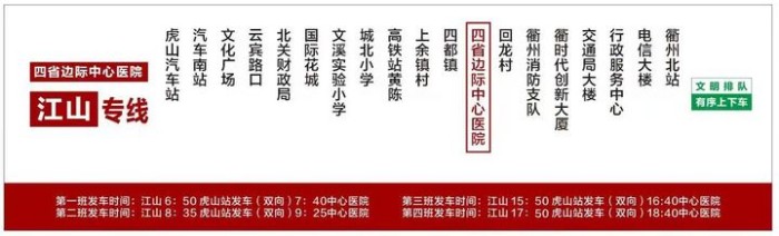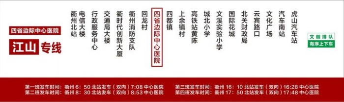 為方便各縣(市)區(qū)患者來院就診,近日,我院聯(lián)合市汽運集團,開通大潤發(fā)免費接送車,以及龍游縣、江山市、常山縣、開化縣四條途經(jīng)醫(yī)院的城際公交線路。