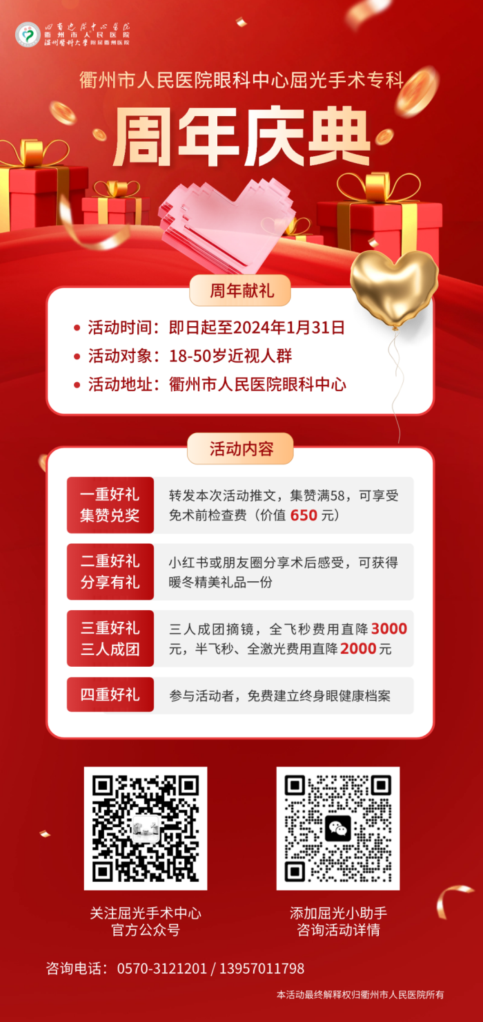日前,衢州市人民醫(yī)院(溫州醫(yī)科大學(xué)附屬眼視光醫(yī)院)眼科中心開展全飛秒周年慶活動(dòng),助力有志青年實(shí)現(xiàn)軍營夢。