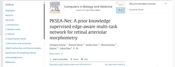 近日,衢州市人民醫(yī)院(溫州醫(yī)科大學(xué)附屬衢州醫(yī)院)眼科中心童毓華主任醫(yī)師團(tuán)隊(duì)與電子科技大學(xué)長(zhǎng)三角研究院(衢州)王卓然教授團(tuán)隊(duì)合作的論文《PKSEA-Net用于視網(wǎng)膜小動(dòng)脈形態(tài)測(cè)量的先驗(yàn)知識(shí)監(jiān)督邊緣感知多任務(wù)網(wǎng)絡(luò)》,在中科院二區(qū)top期刊(小類一區(qū))《Computers in Biology and Medicine》上發(fā)表。