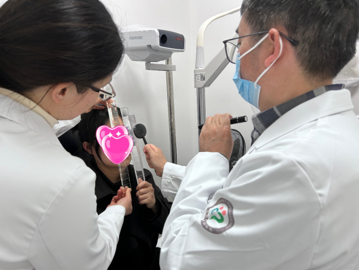 就診后,余煥云主任對陳阿姨進行了系列檢查,發(fā)現(xiàn)是大角度的非屈光調(diào)節(jié)性內(nèi)斜視,俗稱“斗雞眼”。建議進行手術治療。